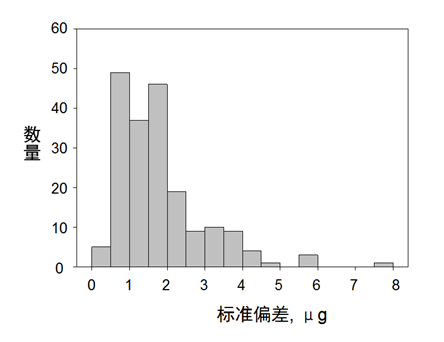 該裝置對PM2.5濾膜多次稱重偏差統(tǒng)計